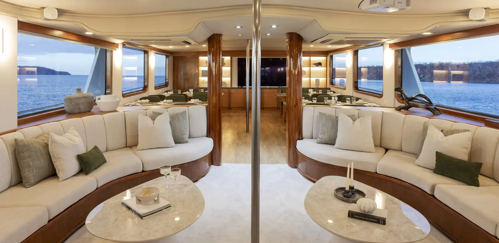 The Deck Salon has a large dining area during the morning, noon, and night. On each side of the room, large windows give you a unique perspective of the Galapagos.